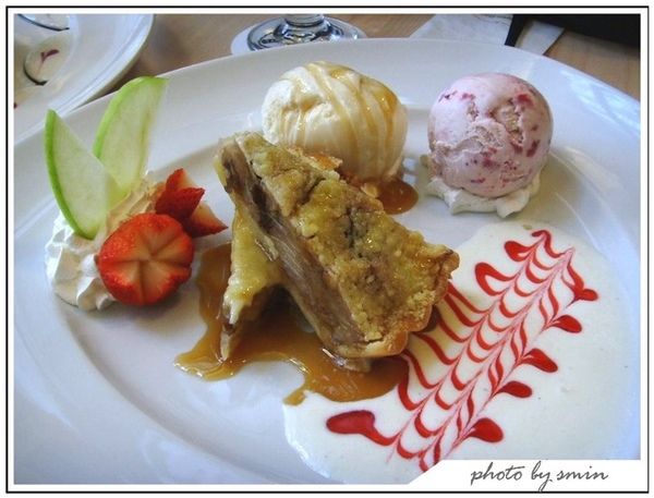 不知道是為了要配合溫熱的蘋果派還是另有用意才會讓盤子還溫溫的,