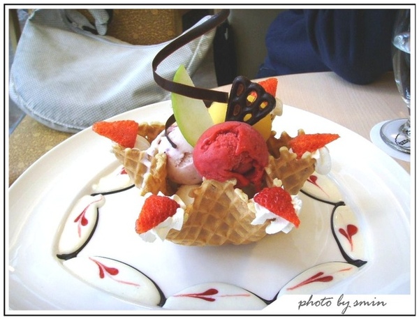 用花形的餅乾籃裝盛著冰淇淋,
