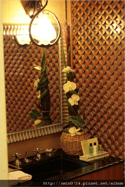 上圖是洗手台兼梳妝台,沐浴用品+護膚乳是必備的。